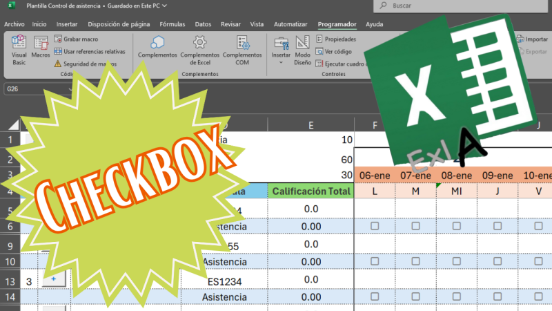Plantilla Excel para el control de asistencia con el uso de Checkbox